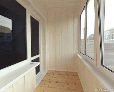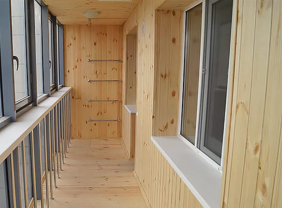 Деревянный, экологичный материал, который подойдет для чистовой отделки всех поверхностей на балконе. Вагонка создает дополнительный слой теплоизоляции, но при этом активно впитывает и отдает влагу.